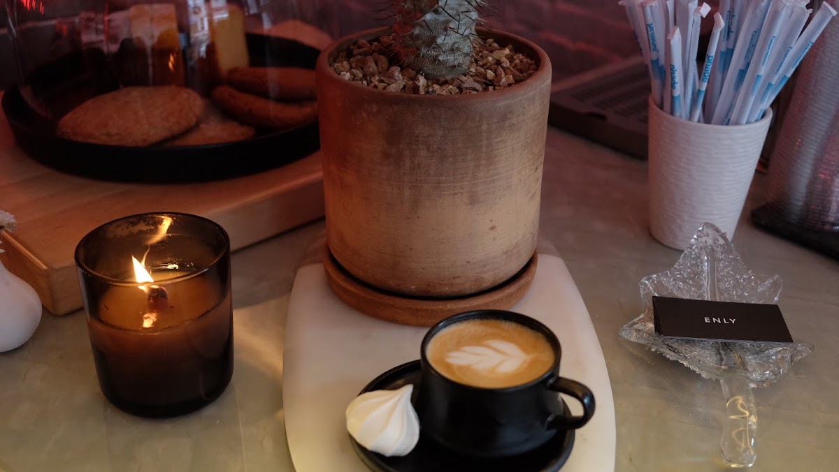 Step inside ENLY, a quietly charming coffee shop tucked away on Mott Street, where the rhythm of the city feels a little slower and more intentional. The space is intimate, with a clean, understated aesthetic that invites calm moments amid the urban bustle. Soft candlelight flickers along one wall, casting a gentle glow that complements the subtle hum of conversation and the comforting aroma of freshly brewed coffee.