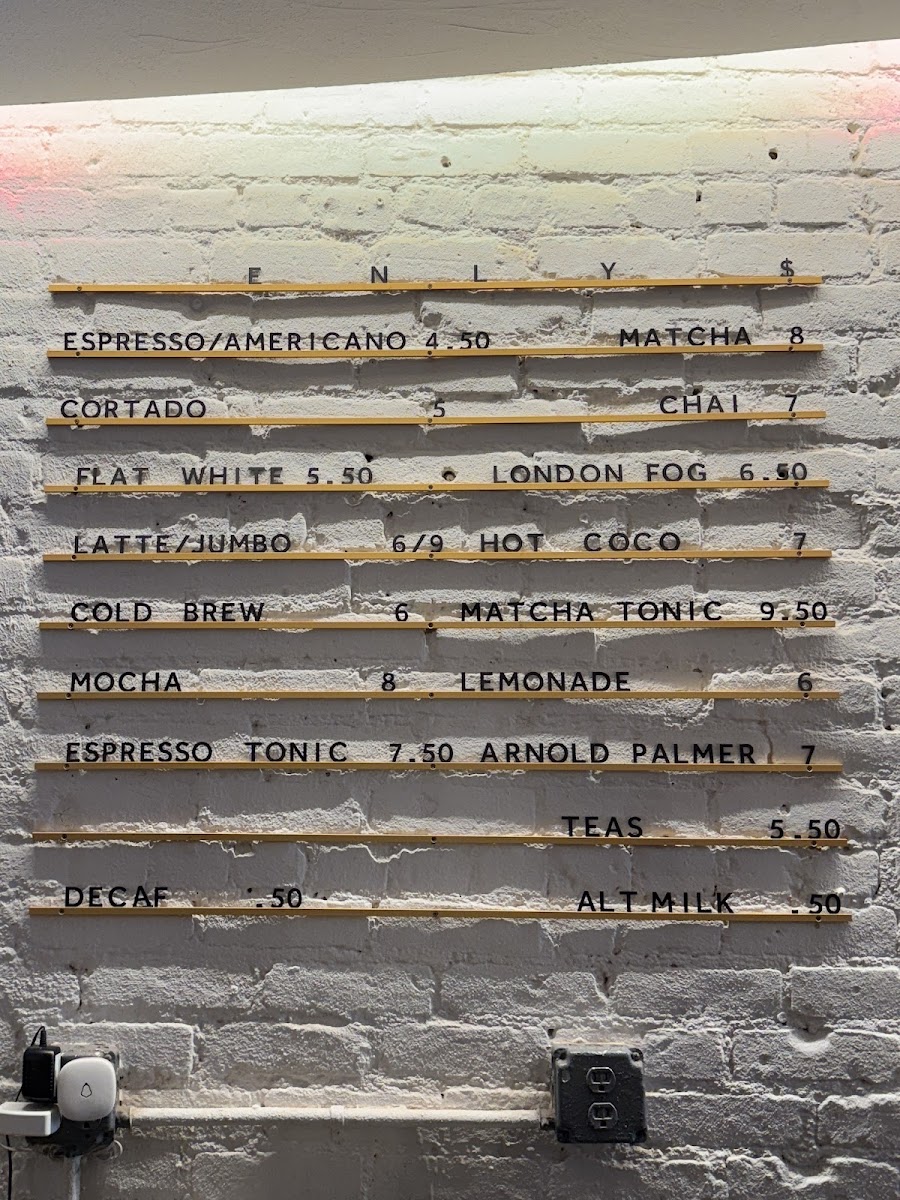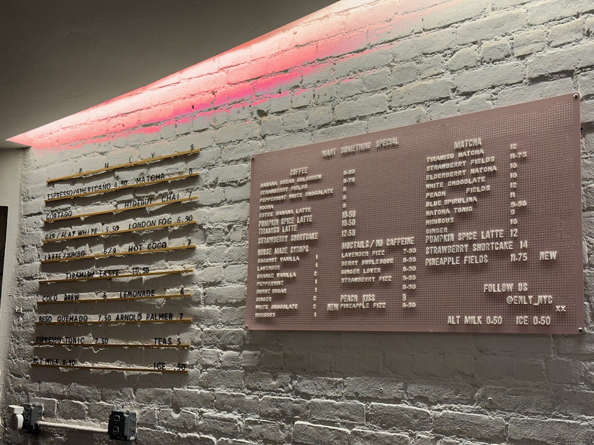 ENLY offers a thoughtfully curated menu centered around specialty coffee and comforting drinks in a cozy, intimate setting. The selection focuses on crafted lattes and matcha-based beverages, perfect for those moments when you want a quiet pause or a small treat to brighten the day.